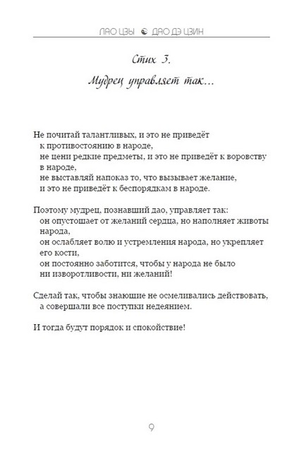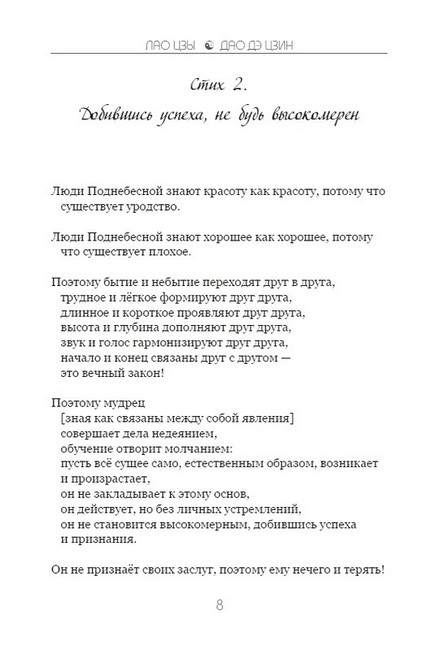 На китайском это произведение Лао Цзы считается поэзией, но данный перевод адаптирован (что большая редкость!) для современного читателя.