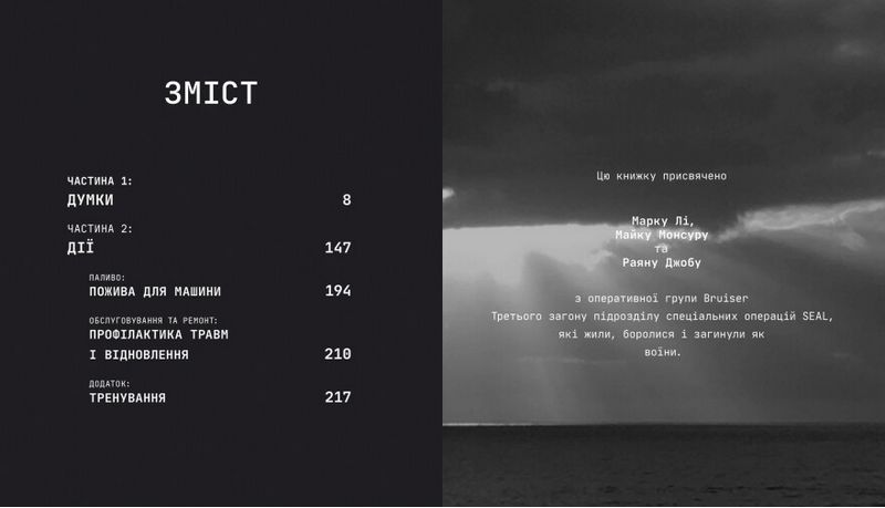 Автор також пояснює, як привчити себе до дисципліни, зокрема про те, як дисциплінувати своє тіло і розум, скільки спати і як харчуватися, щоб бути продуктивними, як не пропускати тренування і встояти перед спокусами. Ця книжка про те, як стати сильнішими, здоровішими, розумнишими і швидшими.
