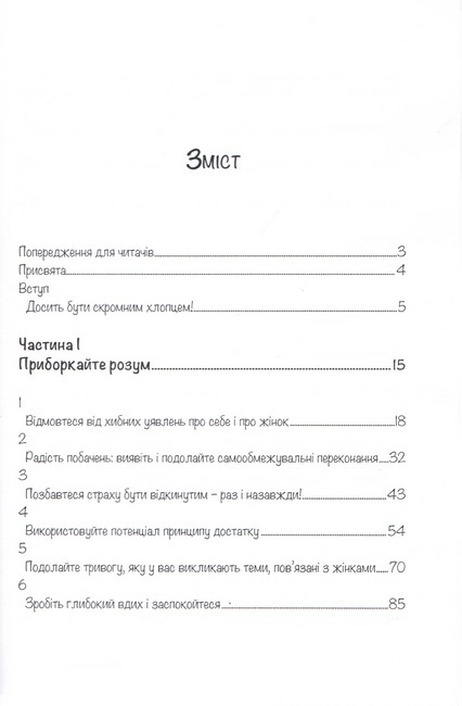 На вечірці ви зустрічаєте прекрасну, чарівну дівчину. Ви вже хочете підійти до неї і познайомитися, але якесь важке почуття виявляється сильнішим, і ви залишаєтеся осторонь. Що ж завадило знайомству? Може, це збентеження або сором’язливість? А може, ви вирішили, що здастеся дурним або наївним чи відчули страх бути відкинутим? Якщо ви хочете розвинути впевненість у собі, навчитися невимушено спілкуватися з жінками та залишатися чарівним за будь-яких обставин, вам допоможе нова книга Роберта Гловера, автора бестселера «Досить бути хорошим хлопцем». Ви зможете протистояти своїм страхам, усвідомите і подолаєте обмежувальні переконання, забудете невдалий досвід, навчитеся розуміти себе та інших і вже ніколи не будете стояти осторонь, зустрівши цікаву дівчину.