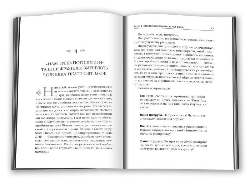 Жінки часто повторюють одні й ті ж помилки у стосунках з мужчинами, і радяться з подругами, у яких виникали схожі або аналогічні проблеми. А варто було б радитися з чоловіками, адже їм легше розшифрувати ту чи іншу поведінку іншого мужчини і підказати, як діяти у різних ситуаціях. У своїй книзі "Діяти як жінка, думати як чоловік" Стів Харві відповідає на безліч наболілих питань, та дає поради: