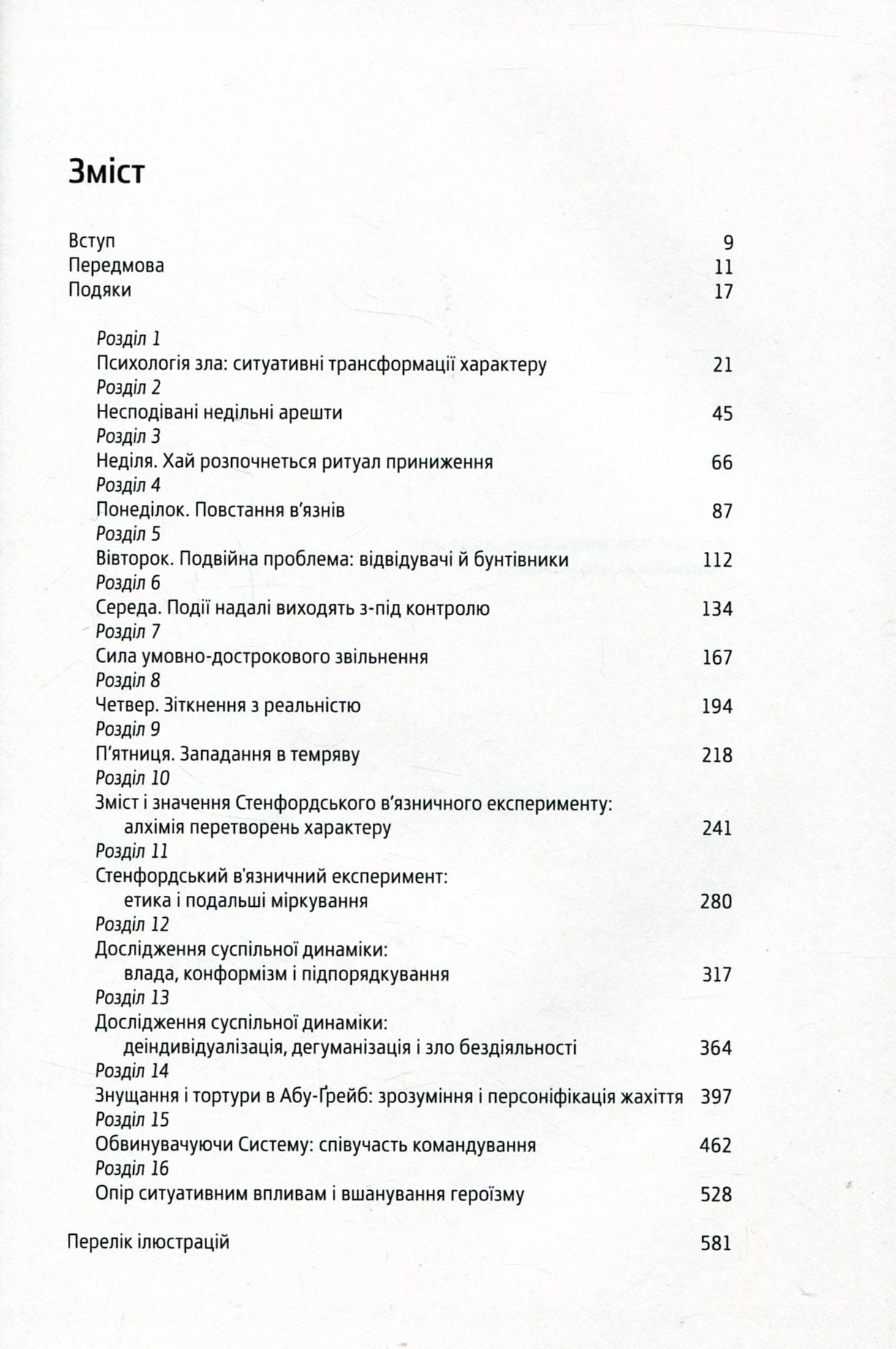 Легендарний американський психолог Філіп Зімбардо через майже 40 років повертається до знаменитого Стенфордського в'язничного експерименту, який він здійснив влітку 1971 року разом з аспірантами і студентами Стенфордського університету. У книжці докладно викладено перебіг експерименту, опис містить розлогі уривки зі щоденника психолога та учасників, матеріали інтерв'ю, аудіо- та відеозаписів.