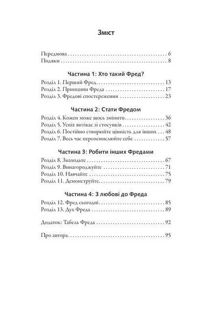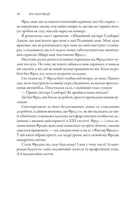 Дотримуючись цих принципів, а також навчаючись і навчаючи інших «Фредів», ви теж можете досягти успіху у своїй кар’єрі та зробити своє життя надзвичайним. Як говорить Марк Сенборн, кожен із нас може бути Фредом. «Фактор Фреда» показує вам, як це робити.