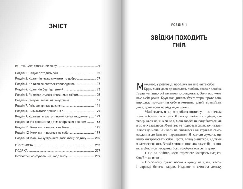 Ця книга – спроба викласти в доступній формі думки, ідеї та методи, котрі допомогли сотням одружених пар і багатьом самотнім людям знайти кращий спосіб опановувати гнів. Тут наведено багато реальних історій людей, яких охоплювало це почуття, й іноді ви будете впізнавати в описаних ситуаціях та розмовах обставини власного життя. Кожен з нас у змозі навчитися краще давати собі раду з власними емоціями.