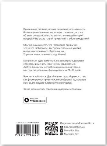 Крихітні, ледь помітні, але регулярні дії здатні змінити наше життя кардинально. Якщо ми робимо одне віджимання на день, це набагато краще, ніж якщо ми зовсім нічого не робимо. Процес вироблення звичок добре вивчений, розкладений на атоми, доступний для використання. Будь-яку звичку, яка потребує високого рівня майстерності, реально сформувати за 21–30 днів.