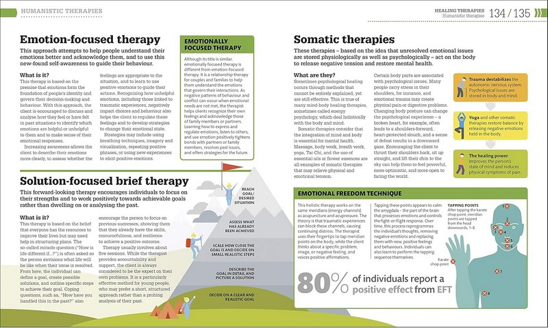 Цей незамінний посібник описує широкий спектр психічних розладів, зокрема біполярний розлад та обсесивно-компульсивний розлад. Він також знайомить з методами лікування, від когнітивно-поведінкової терапії та психоаналізу до групової терапії та арт-терапії. Ця книга також досліджує роль психології у повсякденних ситуаціях. Дізнайтеся, що робить вас собою - унікальне поєднання природи та виховання, яке формує ваше відчуття того, ким ви є, - а також про роль психології у стосунках, спорті, роботі та освіті.