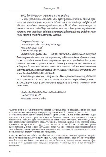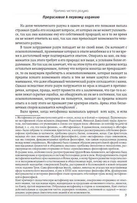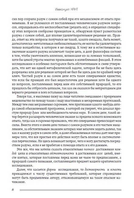 «Критика чистого разума» — философский труд Иммануила Канта, впервые опубликованный в 1781 году. Считается одной из наиболее фундаментальных работ в истории философии и главным сочинением философа. Ключевой вопрос «Критики» — это исследование познавательной возможности разума, в отрыве от знаний, получаемых эмпирическим, то есть опытным путём. На пути своего исследования философ освещает вопросы пространства и времени, возможности доказательства существования Бога посредством разума и др. Научное наследие И. Канта будет интересно читателям, увлекающимся историей развития философской мысли.