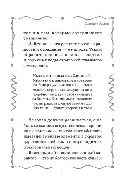 Эта небольшая по объему книга Джеймса Аллена стала краеугольным камнем всей последующей обширной и все разрастающейся «мотивационной литературы» — книг по саморазвитию человека.