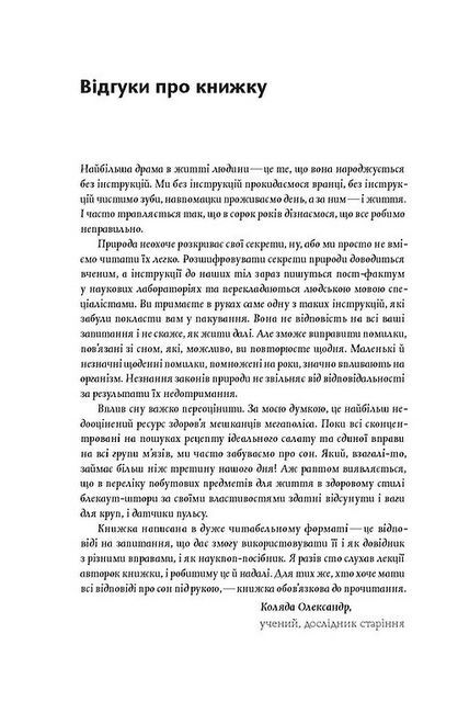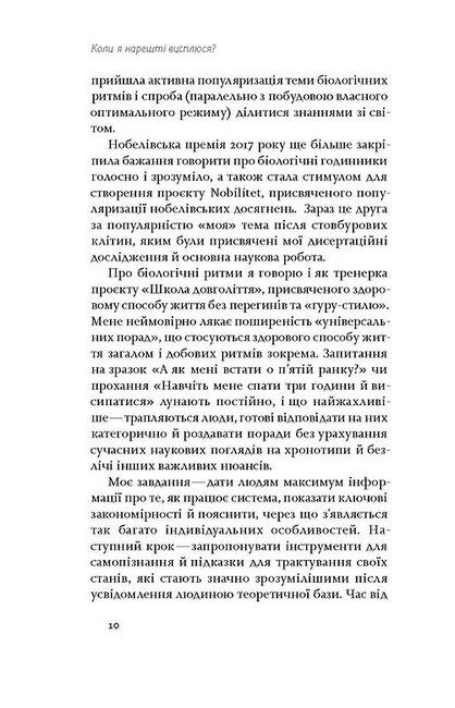 Коли я нарешті висплюся? Це питання ми ставимо собі роками, переконуючи самих себе в тому, що ось уже незабаром (після школи/іспитів/роботи/на старості) налагодимо цей процес. Переконуємо себе так, наче в цьому є щось складне, а у нас — необмежений запас часу. Погані й гарні новини разом: часу в нас мало, але, на щастя, у наших біологічних ритмах немає жодної магії. Сон і біологічний годинник, за яким ми живемо, — хай які складні в роботі механізми, та все ж їх можна налаштувати. Достатньо лише зрозуміти, як усе це працює. Саме ці процеси у книжці «Коли я нарешті висплюся? Як засинати і прокидатися із задоволенням» пояснюють біологині Ольга Маслова та Ніка Бєльська.