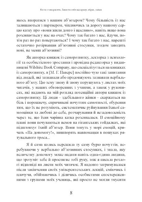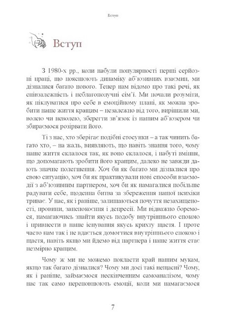 Ця інформація допоможе вам незалежно від того, підліток ви або дорослий, чоловік або жінка. Якщо у вас є діти, книга допоможе вам стати для них найкращим прикладом та орієнтиром, а отже, зменшити ризик, що вони перенесуть практику насильницьких взаємин у власне доросле життя. Отже, почнемо наш шлях до знань і сили, які радикальним чином змінять ваше життя!