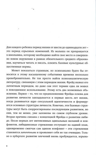 Книга «Латентность: золотые годы детства» посвящена эмоциональному и когнитивному развитию ребенка в период латентности, который служит мостом между шумными и энергичными первыми годами жизни и конфликтным временем подростковости. Необузданные аффекты раннего детства смягчаются, эмоциональный фон развития стабилизируется, – латентный ребенок ищет свое место в мире. Его любопытство и интересы теперь уже не сосредоточены на родителях, а открыты целому миру. Развитие в латентном периоде включает новые физические и умственные возможности, а также совершенно новую способность справляться с социальными задачами. Достигнутая независимость чрезвычайно радует ребенка, доставляя ему огромное удовольствие, отчего Фрейд первым назвал латентность «золотыми годами». Книга «Латентность: золотые годы детства» заполняет некоторый пробел в психоаналитической литературе, подчеркивая важность этого периода жизни для развития личности. Описания случаев из семейной и школьной жизни, наблюдения и зарисовки, а также примеры работы детского психоаналитика, приведенные в книге, помогают читателю проникнуться атмосферой детской фантазии, активности, самостоятельности, гордости своими достижениями и понять динамику психологии латентного ребенка.