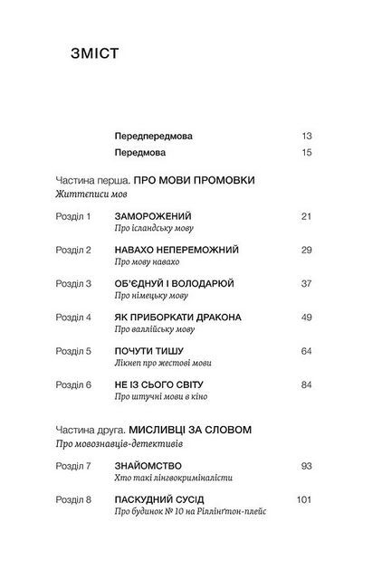 У книжці мовознавця Рустама Гаджієва ви знайдете лінгвістичні історії з усього світу — від Нікарагуа, де місцеві діти самі створили для себе жестову мову, й до Великої Британії з її Пороховою змовою, катами і започаткованими ними словами. Чому сучасний ісландець запросто може прочитати древні тексти без допомоги, і чому у нас так не вийде? Як навахо шифрували послання американців під час Другої світової війни та чим така страшна валлійська (яка насправді не така вже й валлійська)?
