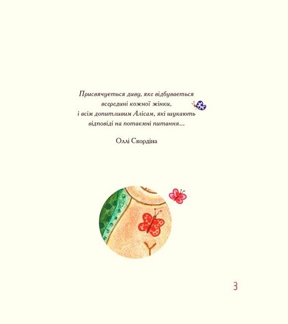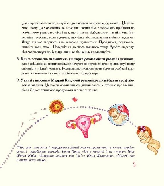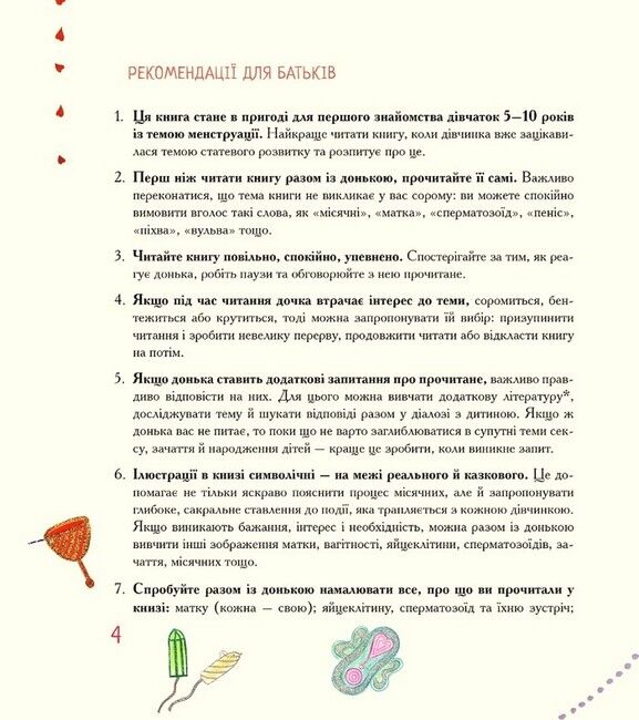 Книга запрошує дівчинку у світ зростання й дорослішання. У книзі на простих прикладах описані фізіологічні процеси, що відбуваються в жіночому тілі. Завдяки дбайливому підходу у маленької жінки формується природнє й приємне сприйняття теми місячних і жіночої ідентичності.