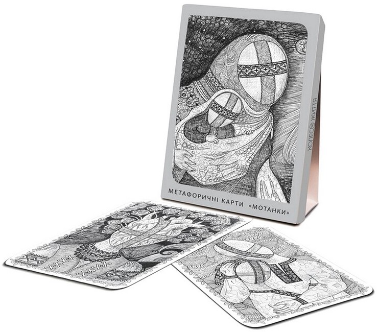 Набір метафорично-асоціативних карт «Мотанки» від видавництва «Колесо Життя» – це 43 карти із зображенням мотанок в різних стилях та інтерпретаціях – від традиційної мотанки до версії-алюзії на картини відомих художників. 43 Мотанки – це 43 жінки різного віку, часу, настрою, які здатні стати вашими співрозмовницями і подругами.