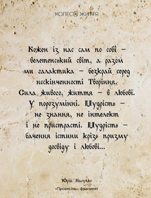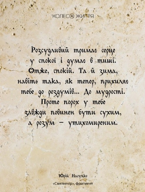 Наприклад, ви коли-небудь захочете запитати оте Вище, Незвідане про те, як жити далі. І почуєте у відповідь: «Розсудливий тримає серце у спокої і думає в тиші. Отже, спокій…» Або «Кожен із нас сам по собі – велетенський світ, а разом ми галактика – безкрай серед нескінченності…».