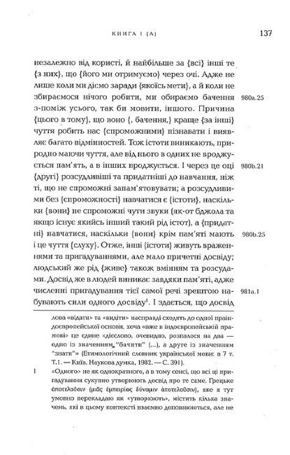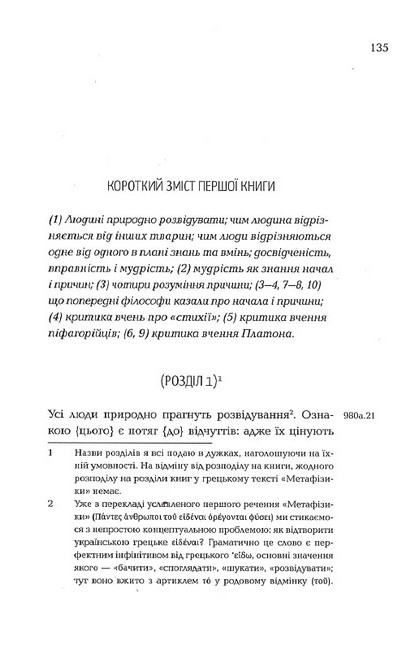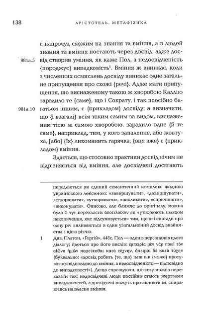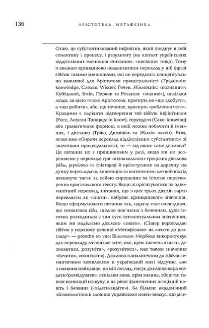 «Метафізика» — засадничий текст для розуміння не лише давньогрецької, а й усієї європейської філософії. Цей український переклад прагне якнайточніше відтворити оригінал в усіх його найдрібніших деталях, аби читачі могли скласти власне уявлення про автентичну термінологію, культуру міркування та світоглядні настанови філософії Арістотеля.