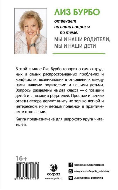 В этой книжке Лиз Бурбо говорит о самых трудных и самых распространенных проблемах и конфликтах, возникающих в отношениях между нами, нашими родителями и нашими детьми. Вопросы разделены на два класса — с позиции детей и с позиции родителей. Простые и четкие ответы автора делают книгу не только легкой и интересной, но и весьма полезной в практическом отношении.