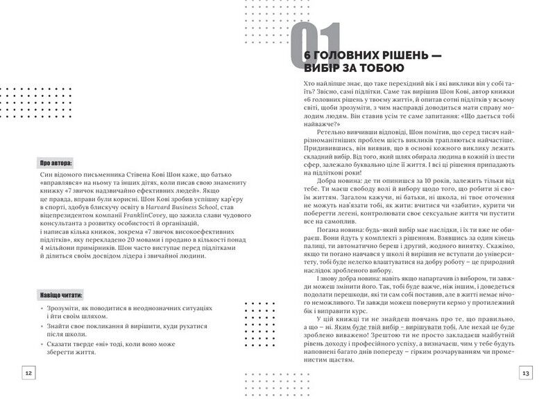 1. «6 головних рішень твого життя. Гід для підлітків, які живуть у цифрову епоху» Шона Кові.