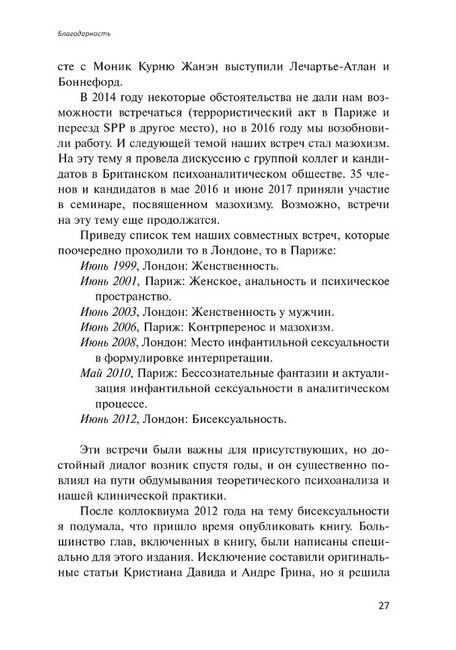 Авторы основательно исследуют понятие бисексуальности как в теоретическом ключе, так и в практическом. Каждая статья содержит клинические зарисовки.