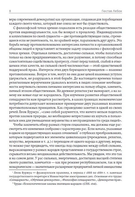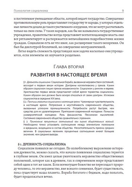 Книга «Психология социализма» была написана Гюставом Лебоном более ста лет назад, но и сегодня продолжает будоражить умы, не теряя своей актуальности. Автору удалось не только последовательно, аргументировано и беспристрастно изложить теорию и основные положения социализма, но и трезво оценить его влияние на человечество, одним из первых увидев губительную сущность этого явления. Книга выдержала многочисленные переиздания и сегодня считается одним из основополагающих философских текстов, обязательных к прочтению для всех, кто стремится расширить свой кругозор и понять сущность понятия «социализм».