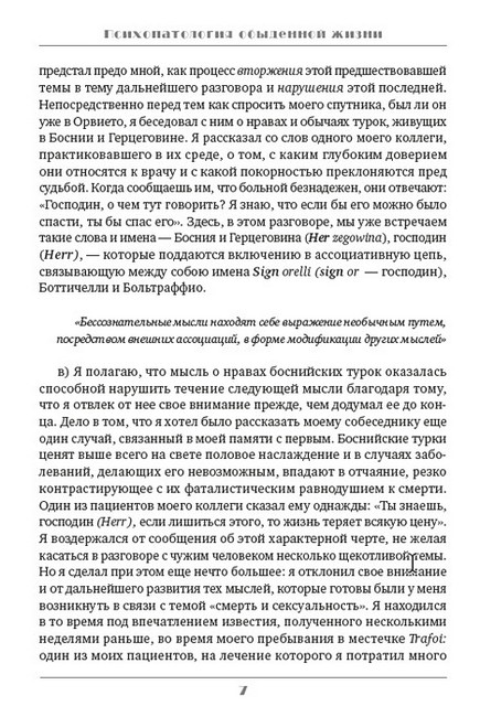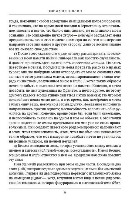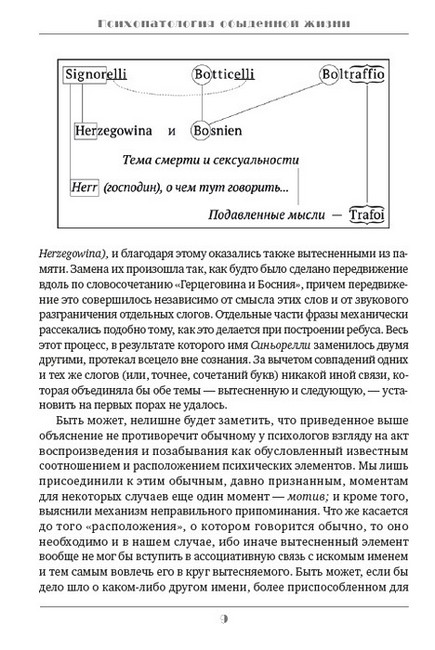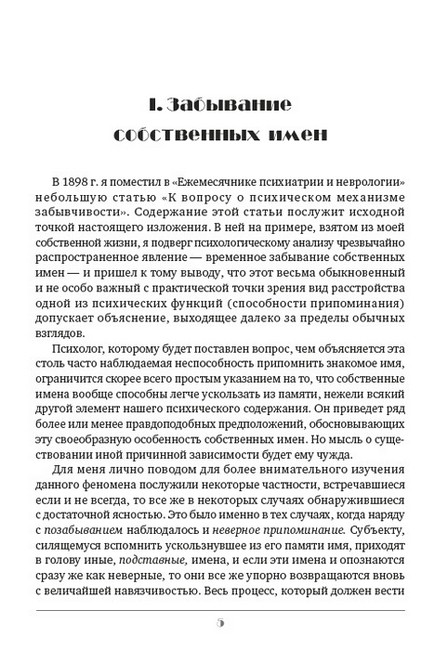 Одна из самых популярных у публики книга Зигмунда Фрейда, «Психопатология обыденной жизни» (1901—1904) — вторая после «Толкования сновидений» (1899) крупная работа, обосновывающая топологическую модель психики (сознание-предсознательное-бессознательное) на примерах проявления бессознательного в повседневной жизни людей. Автор намеренно не обращается к случаям из жизни своих пациентов, а ограничивается лишь воспоминаниями из собственной жизни, а также жизни своих друзей, которых, впрочем, оказывается более чем достаточно. Фрейд доказал, что различного рода оговорки, промашки, оплошности, нарушения речи, забывания, замещения одного слова другим — неслучайны…