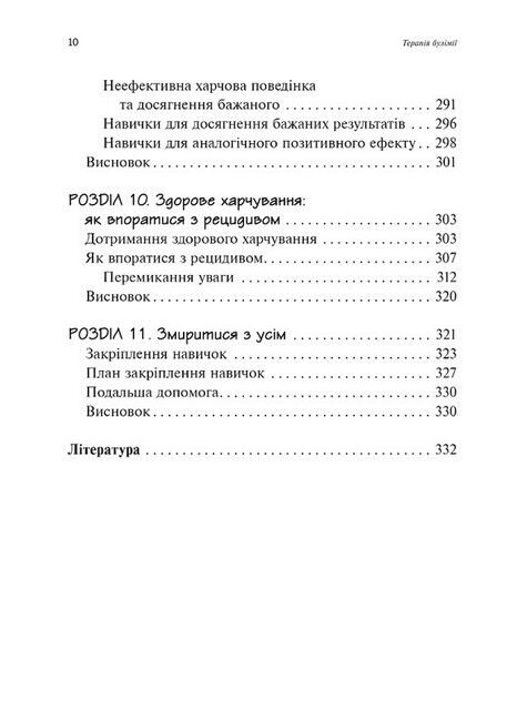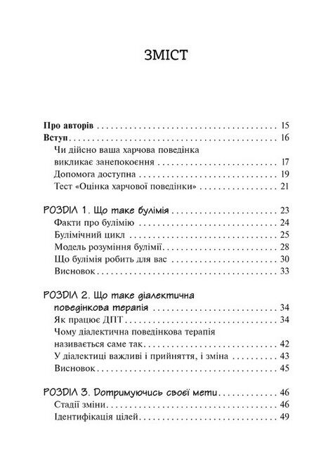 У цій книжці подано важливу інформацію, яка допоможе перервати цикл булімії, спрямувати свою увагу на нинішні проблеми, а не зосереджуватися на минулому або майбутньому, і зробити життя повноцінним. Це також корисний підручник для практика, який допомагає пацієнту в пошуку способів подолання розладу харчової поведінки.