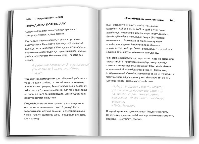 Ти колись почувався хом'ячком у колесі, який усе життя несамовито мчить уперед, але чомусь так і не рушає з місця? Твій самонищівний монолог псує повсякденне життя нескінченним потоком сумнівів і відмовок? Ця книга - словесний ляпас від Усесвіту, щоб ти прокинувся, усвідомив свій потенціал, розгріб своє лайно і зробив своє життя винятковим. Чесний, свіжий, щирий посібник із самовдосконалення без зайвої фігні пропонує підхід істинної любові до себе, який допоможе подолати обмеження, що ми їх самі собі і створили.
