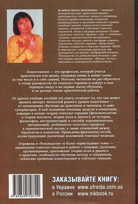 От других учебных пособий эту книгу отличает то, что она может вызвать интерес читателей разного уровня подготовки - от начинающих обучение до практиков и тренеров и даже супервизоров. В ней изложены основные модели и концепции, лежащие в основе теории гештальт-терапии (феноменология и теория контакта, теория поля и диалог), ее история и философия, инструментарий и способы терапевтических интервенций, особенности телесного процесса в терапевтической сессии, а также отношений между терапевтом и клиентом. Приведены фрагменты сессий, иллюстрирующие различные положения гештальт-подхода.