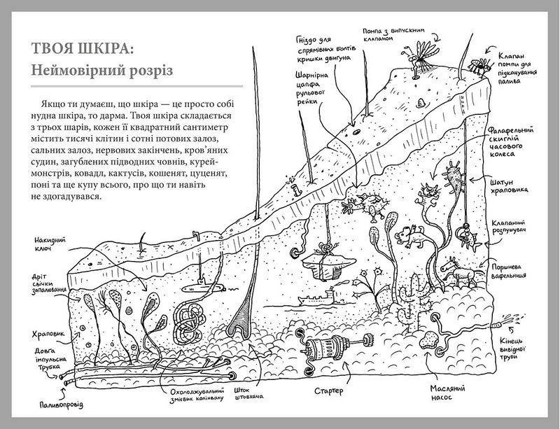 Про людське тіло написано багато дурні, і ця книжка не виняток! 68 ілюстрованих розділів без жодного правдивого факту розкажуть усе, що тобі хотілося б знати про своє тіло, і не втомлять сухою мовою та науковою достовірністю!