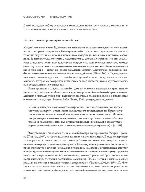 Книга содержит множество клинических примеров, которые помогут психологам лучше понять, как применять сенсомоторную психотерапию на практике и как помочь своим пациентам в их пути к выздоровлению. Кроме того, книга может стать подспорьем для пациентов, страдающих от нарушений привязанности и травматических переживаний, и помочь им в их процессе лечения.