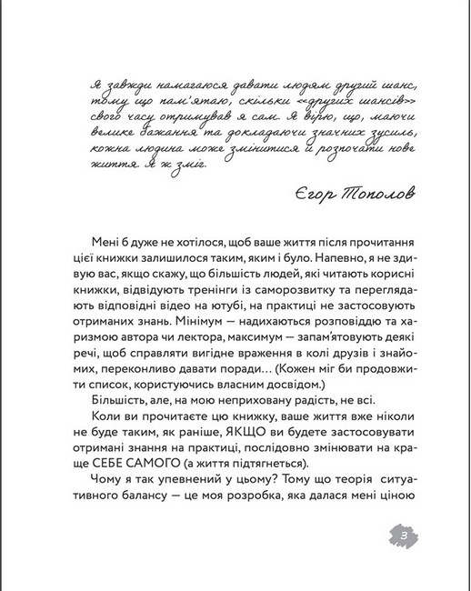 Книжка відомого українського психолога Єгора Тополова присвячена його власній теорії ситуативного балансу.