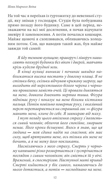 Це книга, яка справді змінює життя людей. Перекладена за двадцять років двадцятьма мовами, вона по праву зарахована до класики духовної літератури. Ден, студент університету та чудовий спортсмен, знайомиться з дуже незвичайним старим, який на довгі роки стає його Вчителем. Дену судилося мандрувати шляхами плоті та духу, романтики та жаху, світла та темряви, сміху та магії, навчаючись бачити світ очима Мирного Воїна.