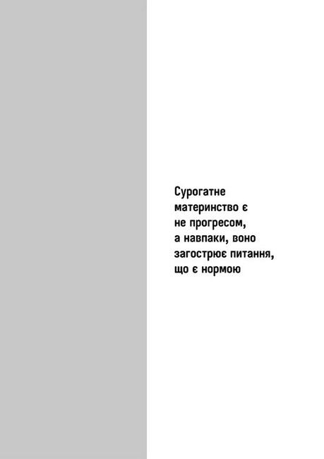 Питання спорідненості – це не лише механічна історія взаємодії матері та дитини. Воно має вплив як на сім’ю, так і на суспільство в цілому, завдяки трансформації родинних законів, які випливають з нього. Заперечення всіх цих елементів, що стосуються допологового життя та зв’язків, породжує цю дуже спірну практику та ігнорує тих, хто є її об’єктами: як матерів, так і дітей. Любов висувається в якості аргументу на користь виправдання цих практик. Вона, безумовно, є бажаною, але умови народження дітей не можуть зводитись виключно до самої лише любові. Більше того, може здаватись, що будь-які роздуми на теми, які можуть ускладнити питання спорідненості, вже наперед визначені культурною вагою того факту, що всі ми походимо з цивілізації, заснованої на міркуваннях походження та його зв’язку із забороною інцесту, що вже вписане в закон в тій же мірі, що і несвідоме. Його порушення ніколи не лишається без наслідків.