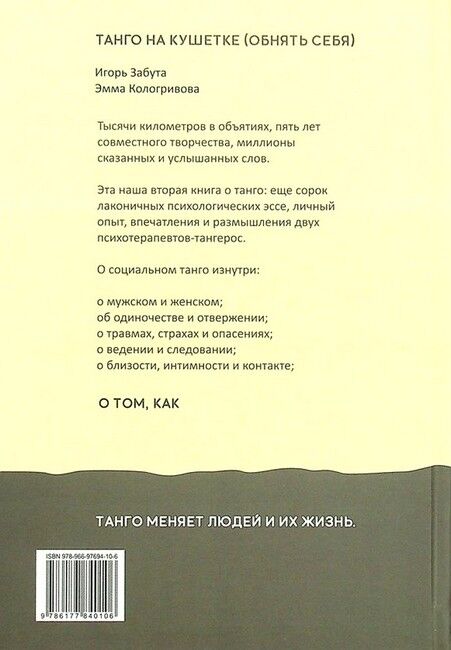 Эта книга - продолжение "Обними меня": еще сорок лаконичных психологических эссе - наш личный опыт, впечатления и размышления психотерапевтов-тангерос о социальном танго изнутри:
