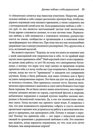 Данная книга представляет радикальную любовь к себе как бальзам для исцеления ран, нанесенных этими насильственными системами. Всемирно известная активистка и поэтесса Соня Рени Тейлор приглашает воссоединиться с истоками нашего разума и тела и обрести коллективную силу и уверенность. Преодолевая внушенный телесный стыд, мы чувствуем вдохновение помочь другим и разрушить системы, которые увековечивают угнетение всех тел. Действуя на основе этой истины в глобальном масштабе, мы открываем преобразующую возможность радикальной любви к себе, которая является шансом для построения более справедливого, равноправного и сострадательного мира - ради всех нас."Чтобы построить мир, который устроит всех, мы должны сначала принять радикальное решение любить каждую грань самих себя… Эта книга - мантра, которую мы все должны практиковать".