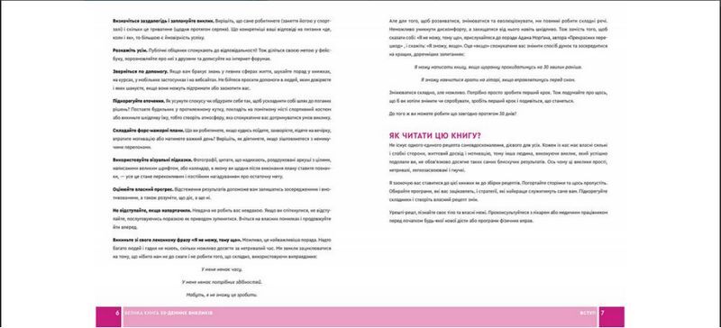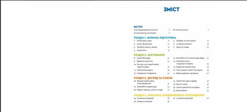 Сповнена дієвих порад про те, як покращити усі аспекти життя, зокрема, фізичний стан, харчування, свідомість, стосунки, кар’єру та багато іншого, ця книжка допоможе вам сформувати усталені звички завдяки 30-денним викликам.