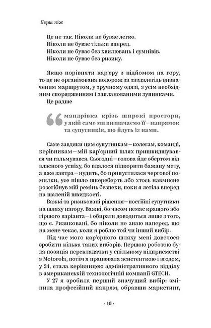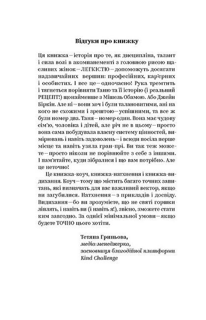 Авторка цієї книжки переконана: якщо доводиться чимось жертвувати, значить, щось точно іде не так. Тетяні вдалося побудувати успішну кар’єру керівниці міжнародної компанії. Крім того, вона викладає, виховує двох доньок, заснувала книжковий клуб. Її робота не зупиняється після офіційного закінчення робочого дня, водночас Тетяна ніколи не «вимикає» дім, коли на роботі. Кар’єра, родина, хобі, інші проекти — все це можна поєднувати та встигати, якщо прийняти просте правило: балансу не існує, є лише персональний вибір на користь тих чи інших речей, які ви вважаєте сенсом свого життя просто зараз.