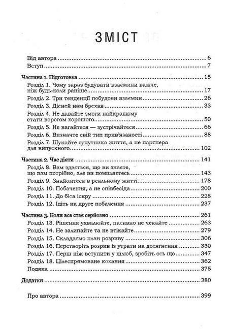 Ця книга про те, як бути усвідомленим і цілеспрямованим у коханні, визнати свої шкідливі звички, коригувати техніку поведінки на побаченнях і починати важливі розмови про стосунки. Взаємини потрібно вибудовувати, а не шукати. Тривалі стосунки з’являються не самі собою, а є кульмінацією низки рішень. І ухвалюючи правильні рішення, ви наближаєтеся до чудової любовної історії. Авторка допоможе зрозуміти, як завдяки правильним рішенням обрати партнера/партнерку мрії, вибудувати здорові довготривалі стосунки, бути у парі та не померти самотнім.