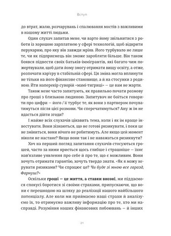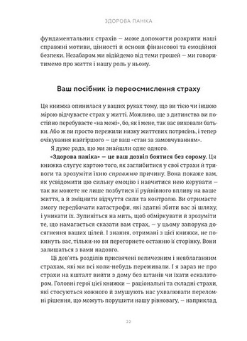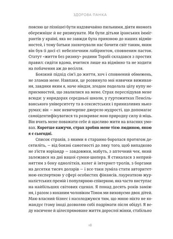 Страх — невід’ємна частина життя. Але щоб досягти успіху, треба відкидати всі страхи і не панікувати. А якщо паніка — нормальний стан? Будь-який страх — це емоція, а кожна емоція має свою роль. Фарнуш Торабі, одна з провідних і найавторитетніших експерток Америки у сфері особистих фінансів, пропонує сприйняти поширені страхи — відмови, самотності, утрачених можливостей, невдачі, втрати свободи — як нагоду пізнати себе й обрати правильний спосіб дії. Страх — не перешкода на шляху до кращого життя, він — спосіб збудувати життя, якого ви прагнете.