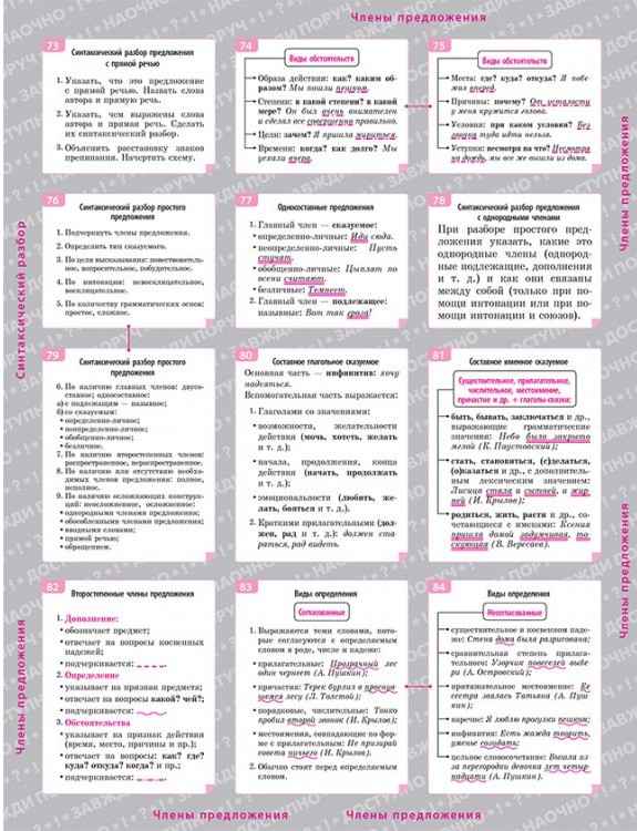 Синтаксичний розбір, також як і структура складнопідрядного і складносурядного речення є базисом для грамотної розстановки розділових знаків. Комплексний підхід, застосований у посібнику, дозволяє школяреві побачити цілісну картину та виявити загальні закономірності.