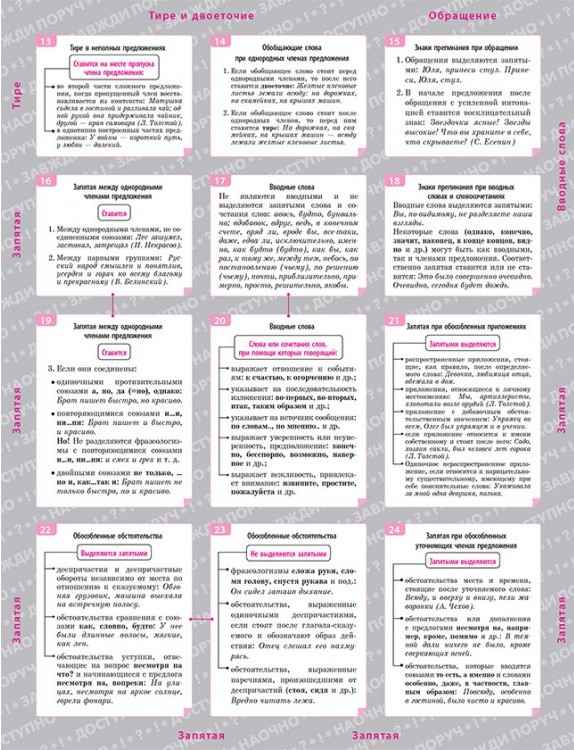 Довідник у наліпках. Російська мова. Пунктуація АССА. У довіднику зібрано понад 250 правил, схем і визначень, які вивчаються в ході шкільного курсу. Посібник складається з 96 багаторазових наліпок, які містять такі важливі теми як граматична основа, синтаксичний розбір речення, розділові знаки при прислівниковому та дієприслівниковому зворотах та інші.