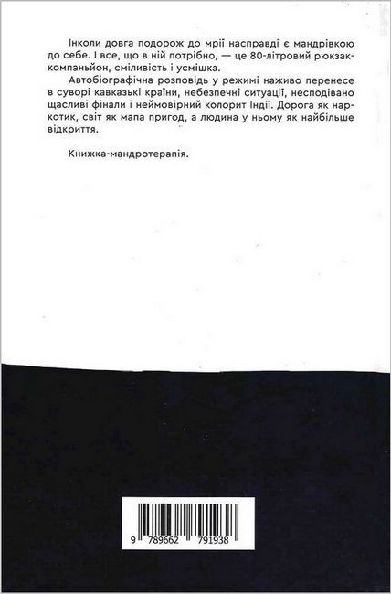 Інколи довга подорож до мрії насправді є мандрівкою до себе. І все, що в ній потрібно, - це 80-літровий рюкзак-компаньйон, сміливість і усмішка. Автобіографічна розповідь у режимі наживо перенесе в суворі кавказькі країни, небезпечні ситуації, несподівано щасливі фінали і неймовірний колорит Індії. Дорога як наркотик, світ як мапа пригод, а людина у ньому як найбільше відкриття.