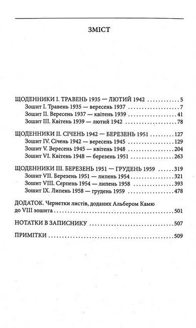 Починаючи з 1935 року і до самої смерті у 1960-му, коли він загинув в автомобільній аварії, Альбер Камю, письменник, який ще за життя став класиком французької літератури, вів свої так звані зошити. Щоб уникнути плутанини із іншими нотатками — «Зошитами Альбера Камю», — перші видавці обрали назву «Щоденники».