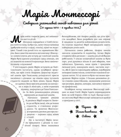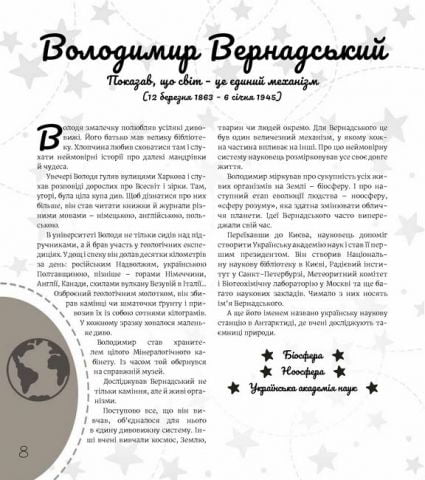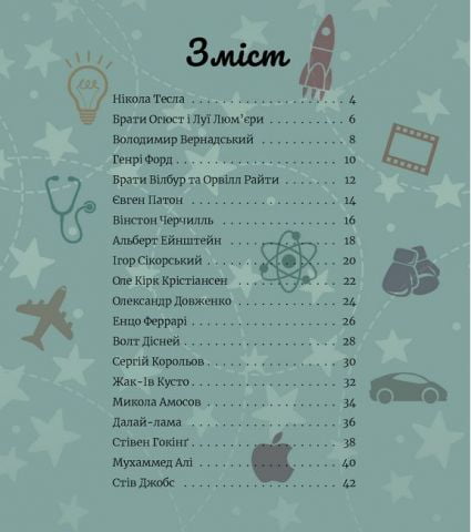 Дивовижні особистості, які змінили ХХ століття — це неймовірна та яскрава збірка біографій. Ціла книжка пізнавальних та захоплюючих розповідей про життя талановитих людей. Цікаві біографії та казкові портрети познайомлять дитину з найвидатнішими діячами минулого століття. Щодня своїми досягненнями, ідеями, творчістю, винаходами ці відчайдухи змінюють світ на краще.