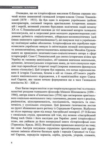 Чи справді історія Галичини починається тільки від 1772 р.? Які внутрішні за- грозливі виклики пережив цеи? краи? у ХІХ ст.? Чи виконала Галичина свою роль «Украі?нського П'ємонту»? Якою була місія провідних галицьких інтелектуалів? Яким є геополітичне значення регіону? Чи стане Галичина сучасною «Украі?нською Баварією»? Ці та багато інших проблем трактуються в книзі відомого есеі?ста-культуролога, літературознавця, історіософа та політолога Олега Багана, якии? знаходить для них оригінальні, публіцистично актуалізовані насвітлення. Книга складається із серіі? студіи? та есе, які цілісно формують монографічне дослідження специфіки галицькоі? ідентичності та культурноі? свідомості.