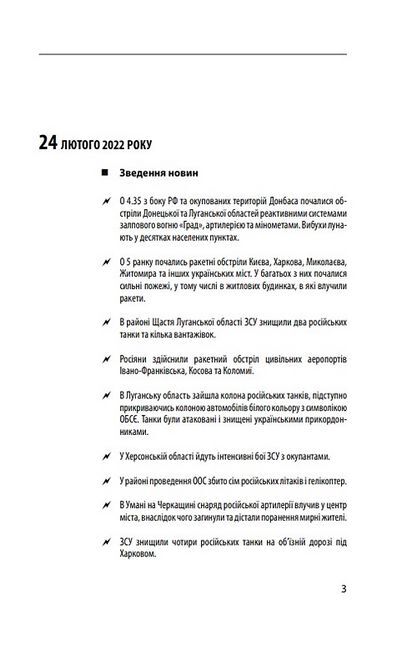 У книзі хронологічно впорядковано публікації щоденних новин, повідомлення з офіційних джерел.