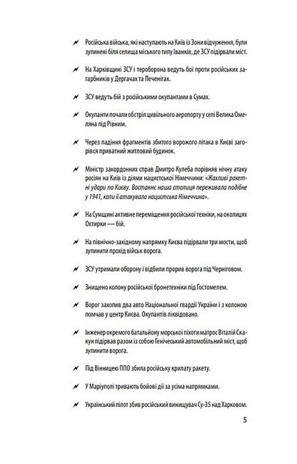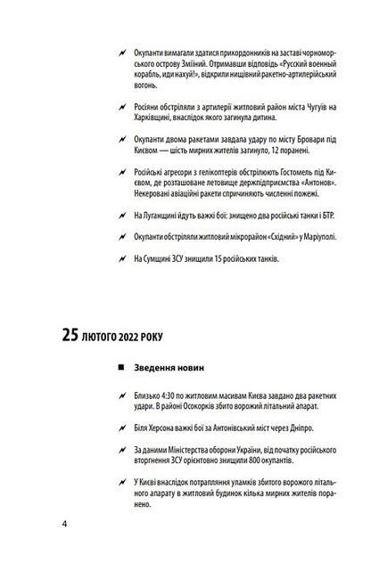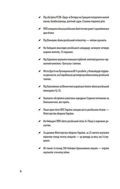 Документальна хроніка повномасштабного вторгнення Росії в Україну нагадує читачу про трагічні та героїчні події шести перших місяців гарячої фази війни з 24 лютого до 24 серпня 2022 року. Ворог планував «блискавично» підкорити країну, вбиваючи мирних мешканців і знищуючи міста, але українці героїчно чинили опір.