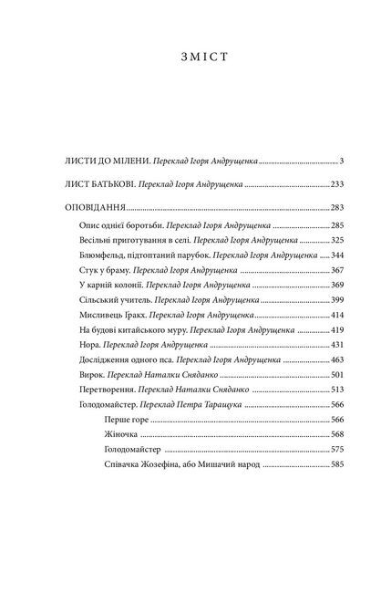 «Листи до Мілени» адресовані Мілені Єсенській, чеській журналістці, коханій Франца Кафки. Їхній роман розпочався навесні 1920-го і тривав усього кілька місяців, однак листування продовжувалося аж до 1923 року. Саме Мілені Єсенській письменник передав свої щоденники та «Лист батькові», в якому відобразив свої вельми складні стосунки з батьком. Страхи Кафки, які розпізнала Мілена, не дали їм бути разом. Тож не дивно, що їхні шляхи розійшлися.