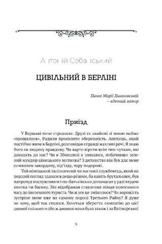 Антоній Собанський (1898–1941) – аристократ, світський лев, поліглот, журналіст, автор книги «Цивільний в Берліні» – серії репортажів з Німеччини після перемоги нацистів на виборах. Кілька разів він їздив до Німеччини, щоб на власні очі переконатися, як націонал-соціалізм змінює життя німців. Собанський стає, серед іншого, очевидцем знаменитого спалення книг, відвідує «партайтаґ» у Нюрнберзі та з жахом слухає пресконференцію «відвертого психопата» Юліуса Штрайхера.
