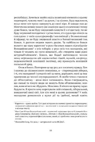 \nСьогодні, коли ця книжка йде до українського читача, не можемо не сказати про те, як боляче резонує мало не кожне спостереження Антонія Собанського з гітлерівської Німеччини 30-х із тим, що відбувається в путінській Росії. Зрештою, і світ, здається, мало змінився – знову з диктатором шукають домовленостей, порозуміння, намагаються «зберегти йому обличчя», очікують, що він «нарешті все зрозуміє», не усвідомлюючи, що це може потягнути за собою катастрофу, значно страшнішу за Другу світову війну.