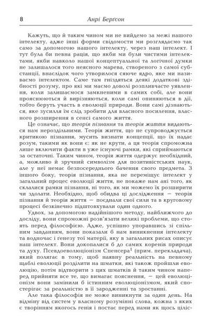«Якби ця книжка не потрапила мені до рук саме в ту мить, я, можливо, втратив би глузд. Ця книжка трапилася мені, коли інший великий світ розсипався на моїх очах» – писав про Берґсонову «Творчу еволюцію» Генрі Міллер. З’явившись у 1907 році, ця праця справді була сприйнята як інтелектуальний переворот на рівні з Ейнштейновою теорією відносности та вченням Фройда про підсвідомість.
